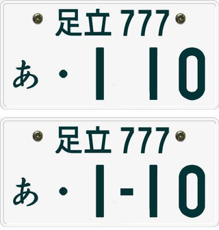 ラングラーの写真に今子供たちが乗っている3桁のナンバーと、 私が乗っている4桁の写真を合成してみたのですが(苦笑)、 やはり子供たちの意見は4桁の方がとの事でした。 小さめの車なら3桁でもいいけど、大きいからという意見でした。自動車登録番号標(ナンバープレート)の見クルマのナンバープレートには、平仮名の右に1 ~ 4桁の数字が大きく表示されている。 この数字は正式には「一連指定番号」と呼ばれ、「・・・1」~「9999」までの数字が割り振られる。 このうち、このうち4桁の番号は、中央に「‐」ハイフンが入るが、1桁から3桁の番号は空白になる部分が「・」の記号で埋められるだけで、ハイフンは入らない。 関連記事